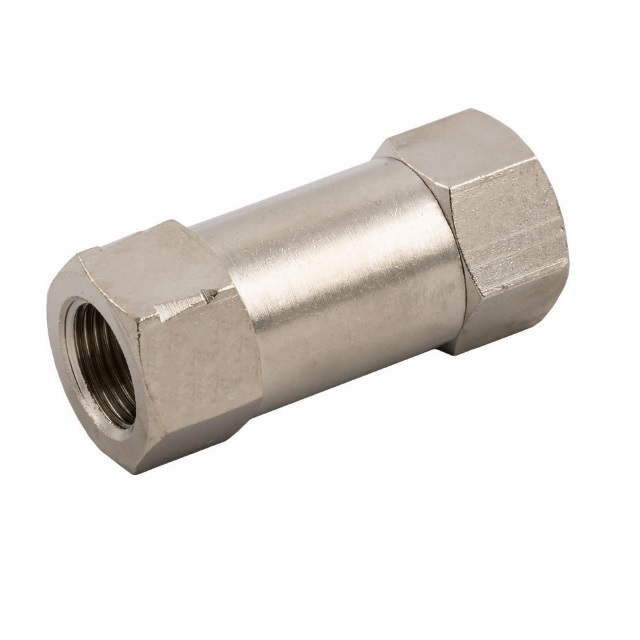 Směr proudění přes spojku je schematicky vyznačen na tělu spojky. Tento ventil zabraňuje zpětnému proudění při rozpojení přívodní hadice.Těleso: poniklovaná mosaz/ hliník, ventil: hliník, těsnění: NBR, přídržné čelisti: nerezová ocel, kartuše: ZnDC poniklováno, uvolňovací kroužek PBT (během montáže se používají pouze těsnění bez obsahu silikonu a maziva).